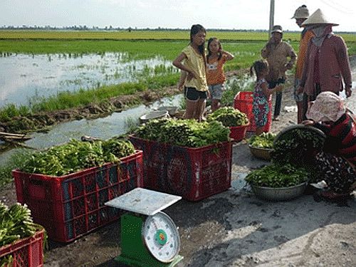 Theo chị Châu Thị Mo– thương lái có hơn 10 năm mua hẹ này cho biết: Không chỉ có ở Mộc Hóa, hẹ nước cũng có ở một số huyện khác của Long An như Đức Huệ… Tui mua rồi phân phối ở các chợ đầu mối như Hóc Môn, Thủ Đức (TP Hồ Chí Minh)… Ngoài lái trong tỉnh, còn có lái từ Tiền Giang, Tây Ninh…